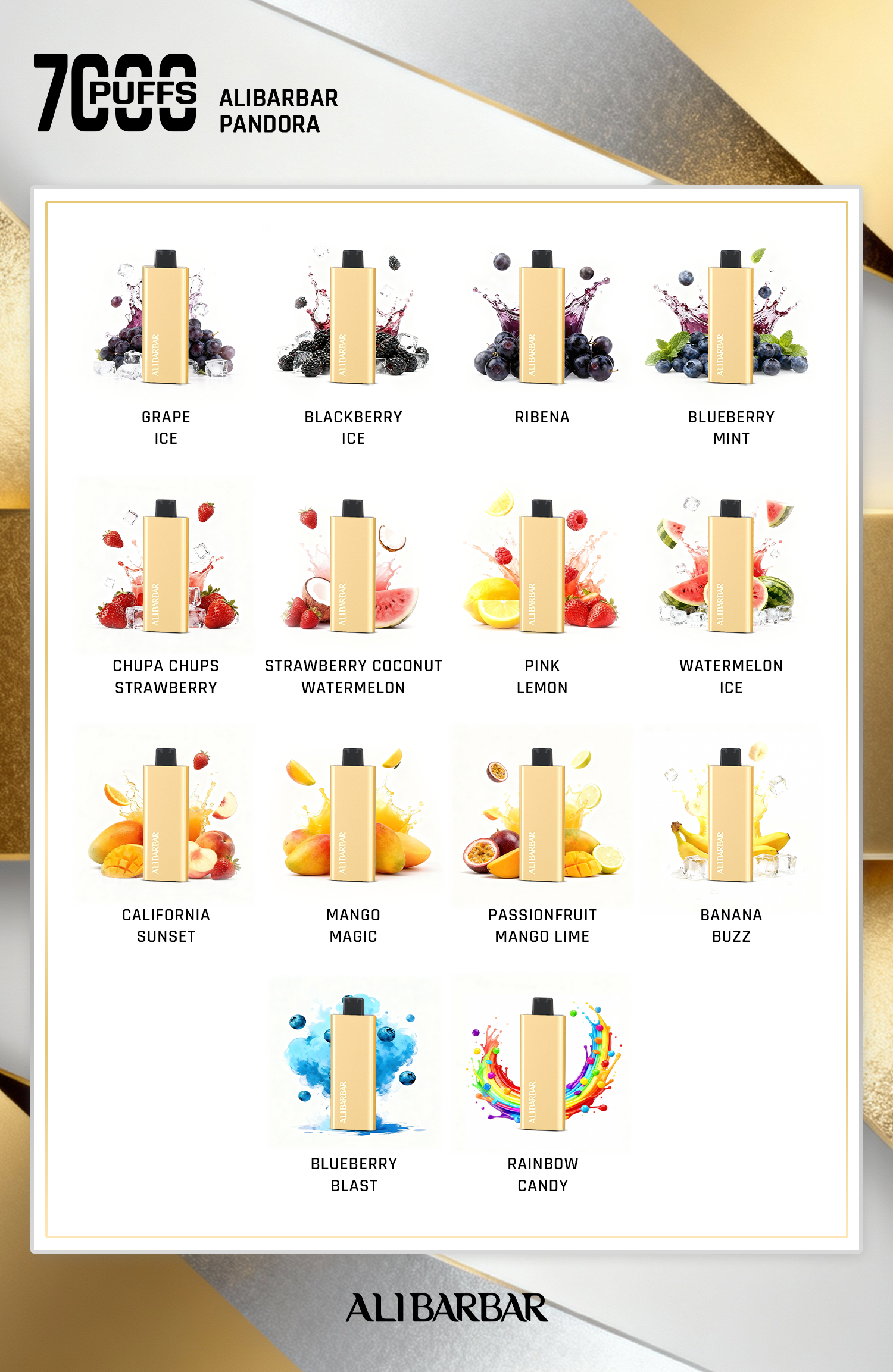 Introducing the ALIBARBAR Pandora 7000 PUFFS, a high-performance, disposable vape device designed for vapers who crave an extended, hassle-free experience. This premium device offers up to 7000 puffs, setting a new benchmark in vaping longevity. The ALIBARBAR Pandora, featuring a sleek design and a wide variety of options, caters to both new and seasoned vapers, providing a satisfying and consistent vaping experience.