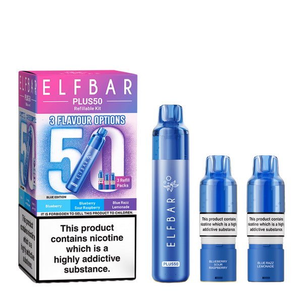 ELF BAR Plus 50 Pod Vape Kit FEATURES800mAh Rechargeable BatteryRechargeable Reusable KitUp To 50,000 Puffs20mg (2%) Nic Salt0.8Ohms QUAQ Mesh CoilLED Battery IndicatorTransparent E-Liquid Level3 x 2ml Prefilled Pods3 x 8ml Prefilled Refill ContainersDraw ActivatedMouth-To-Lung VapingCompatible w…