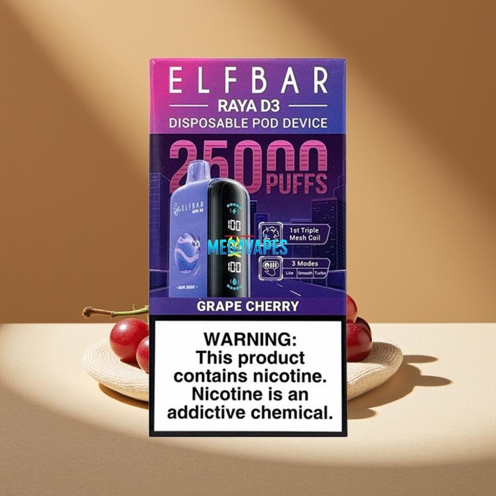 ELF BAR RAYA D3 25000 Puffs Rechargeable Disposable Vape with Screen – Grape Cherry